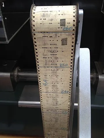 一个“补丁”指的是文件之间一系列差异,这些差异能被 Unix 的 diff 程序应用在源代码树上。我们能使用 diff 工具来创建“差异”(或“补丁”),然后使用该工具将它们 “打” 在一个没有这个补丁的同样的源代码版本上。此外,(我又要开始跑题说些历史轶事了……),“补丁” 这个词真的指在计算机的早期使用打卡机的时候,用来覆盖在打孔纸带上来对软件进行修改的覆盖纸,那个时代打孔纸带就是在计算机处理器上运行的程序。下面来自 维基页面 的这张图真切的描绘了最初的“打补丁”这个词的出处:
