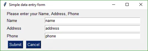 form = sg.FlexForm('Simple data entry form')