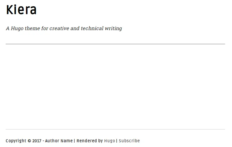 Hugo 中你可以自己构建博客的主题或者使用网上已经有的一些主题。这里选择 Kiera 主题,因为它简洁漂亮。按以下步骤来安装该主题: