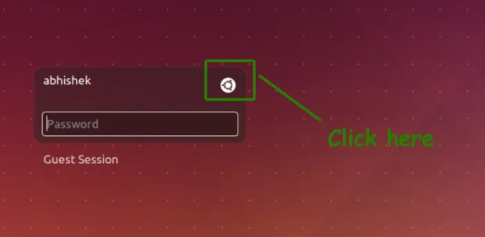 Cinnamon 安装完成后,退出当前会话,在登录界面,点击用户名旁边的 Ubuntu 符号:
