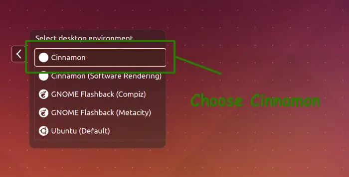 之后,它将会显示所有系统可用的桌面环境。选择 Cinnamon。