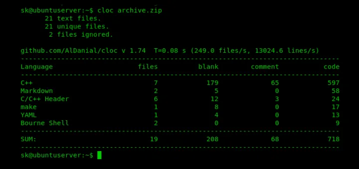 $ cloc archive.zip