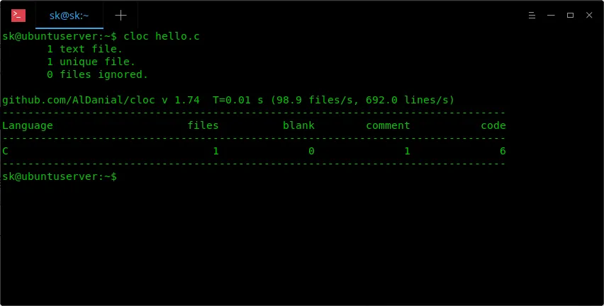 $ cloc hello.c