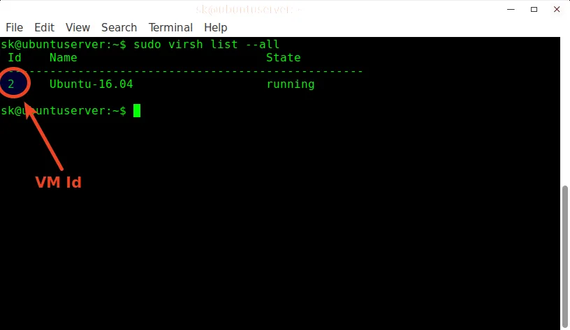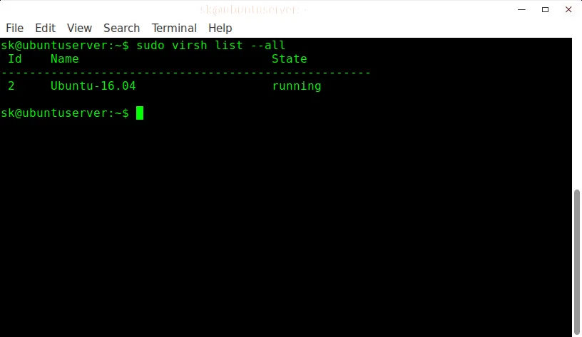 $ sudo virsh start Ubuntu-16.04