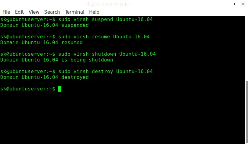 $ sudo virsh destroy Ubuntu-16.04