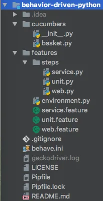 要了解一个 behave 项目应该是什么样子,这里是示例项目的目录结构: