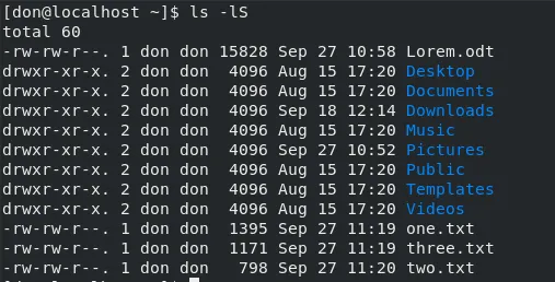 ls -S - 带有文件大小的长格式: