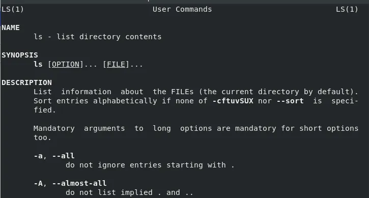 在我的 Fedora 28 系统的手册页中,我发现 ls 还有许多其它选项,所有这些选项都提供了有关 Linux 文件系统的有趣且有用的信息。通过在命令提示符下输入 man ls,我们可以开始探索其它一些选项: