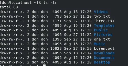 要以相反的顺序列出内容,请使用 ls -lr: