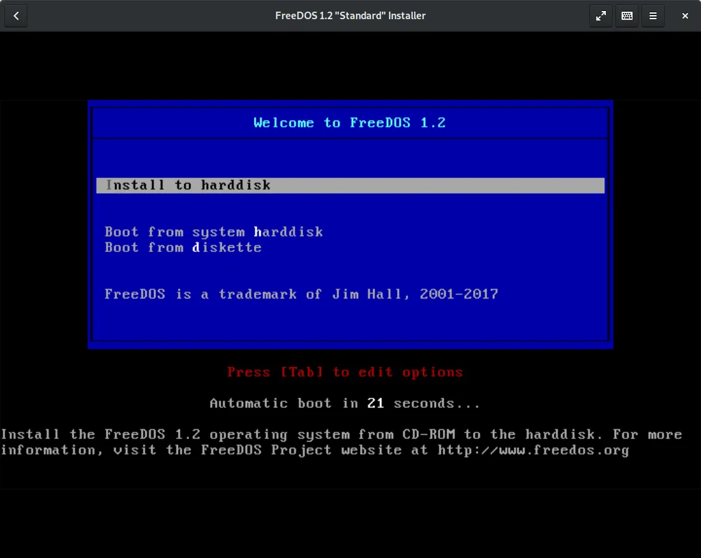 要从列表中安装一个操作系统,只需选择并完成创建一个新的虚拟机。一些操作系统,比如 FreeDOS,并不支持快速安装。这些操作系统需要虚拟机从安装介质中引导。之后你可以手动安装。