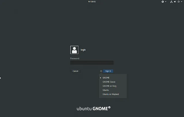 安装完成后,重启系统。在登录屏幕上,单击用户名,单击 “Sign in” 按钮旁边的齿轮图标,然后选择 “GNOME” 而不是 “Ubuntu”,之后继续登录。