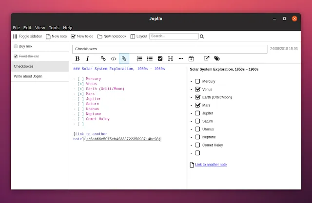 Joplin 适用于 Linux、Windows、macOS、Android 和 iOS。在 Linux 上,还有 AppImage 和 Aur 包。