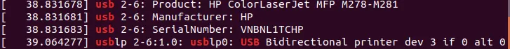 该命令返回 “Bus 002 Device 004: ID 03f0:ad2a Hewlett-Packard” —— 这没有太多价值,但可以得知打印机已连接。我可以通过输入以下命令获得有关打印机的更多信息: