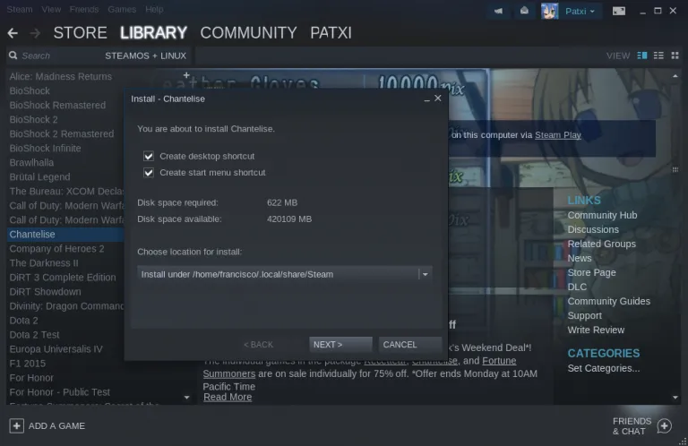 现在你已经启用 Proton,开始安装游戏,选择你想要安装的游戏,然后你会发现这个安装过程类似于在 Steam 上安装一个普通游戏,如下面这些截图所示。