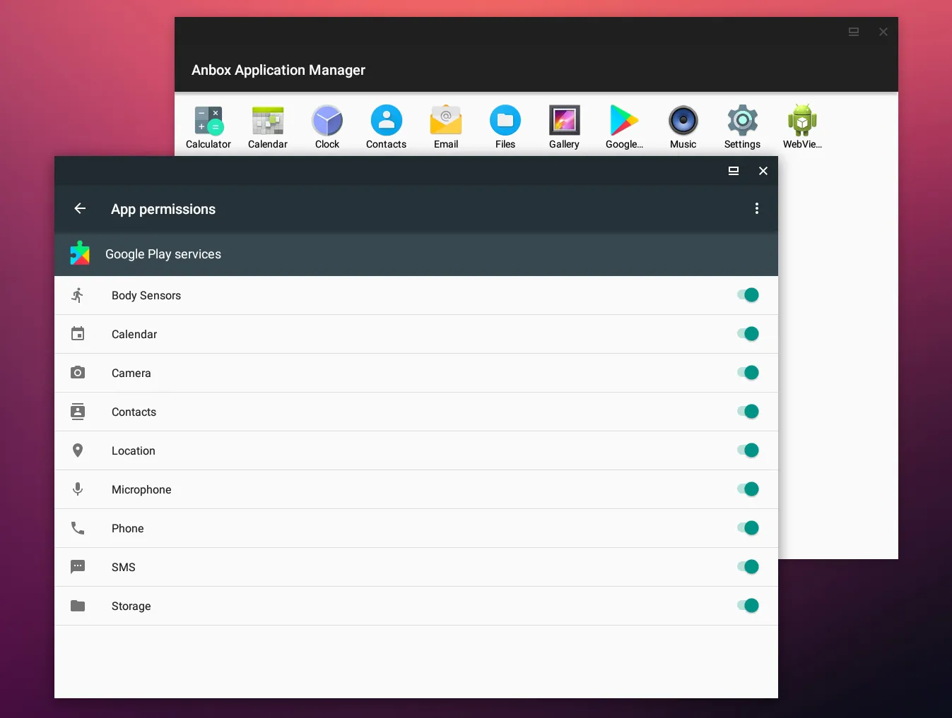 3、要让 Google Play 商店在 Anbox 中运行,你需要启用 Google Play 商店和 Google Play 服务的所有权限