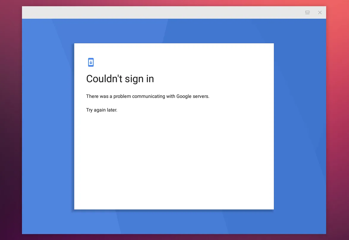 如果未启用 Google Play 商店和 Google Play 服务的所有权限,你可能会在尝试登录 Google 帐户时可能会遇到问题,并显示以下错误消息:“Couldn’t sign in. There was a problem communicating with Google servers. Try again later“,如你在下面的截图中看到的那样:
