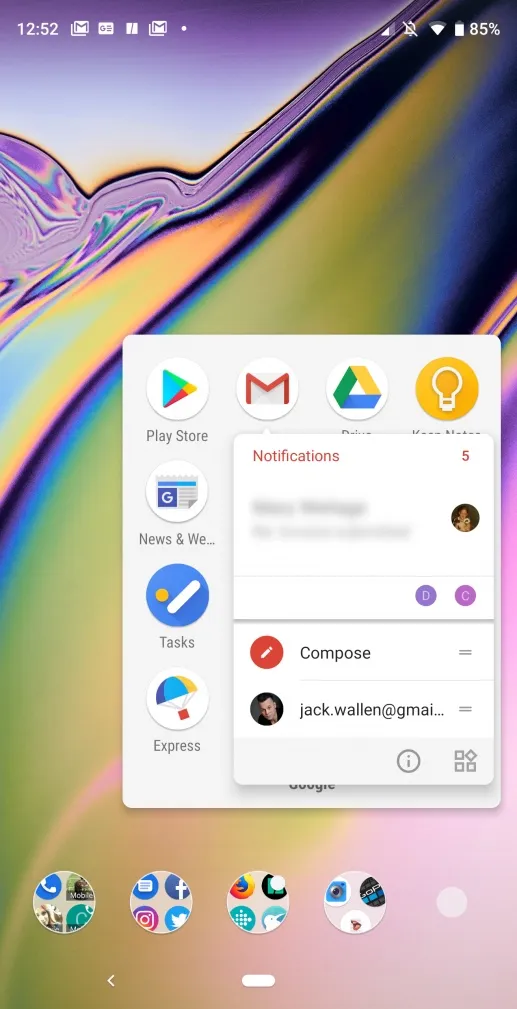 例如,长按 GMail 启动器,就可以执行回复最近的邮件、撰写新邮件等功能。在 Android 8.0 中,这个功能则以弹出动作列表的方式展现。在 Android 9.0 中,这个功能更契合 Google 的 材料设计 风格(图 4)。