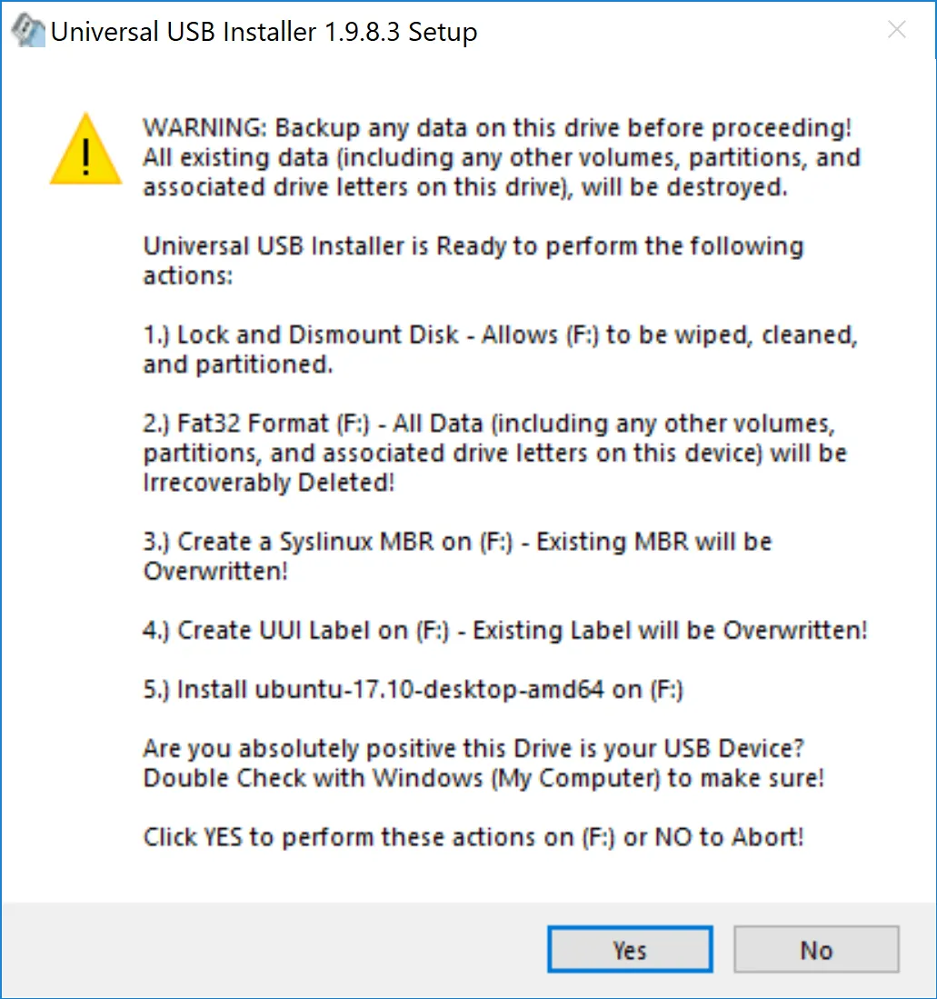 当你点击 “Create” 按钮时,它会弹出一个带有警告的窗口。不用担心,只需点击 “Yes” 继续进行此操作即可。