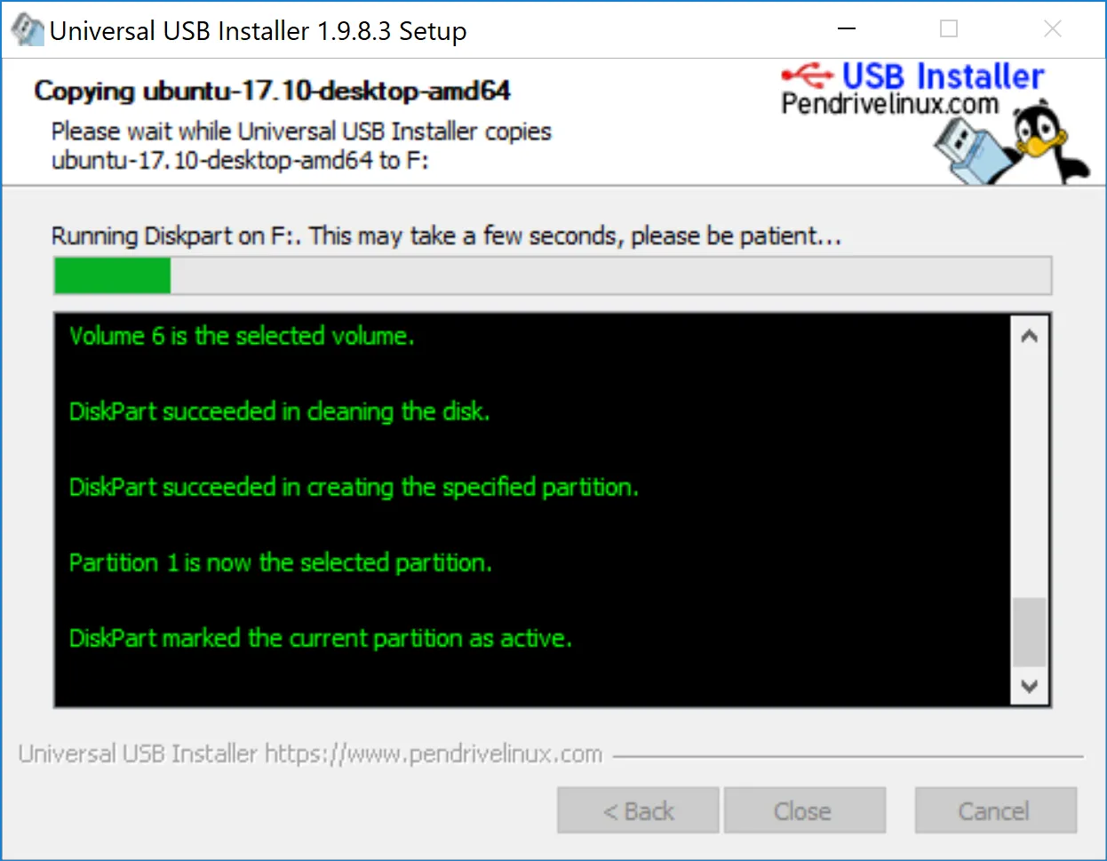 USB 盘分区正在进行中。