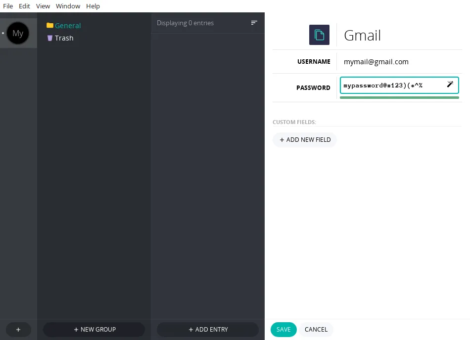 你还可以将登录的详细信息分组到不同的名称下,以便于识别。例如,你可以将所有邮箱账户分组到一个名为 “my_mails” 的名称下。默认情况下,你的登录详细信息将保存在 “General” 群组下。要创建新的群组,请点击 “NEW GROUP” 按钮并输入名称。在新的群组中创建新条目时,与上述的步骤相同,只需单击组名并开始添加条目。