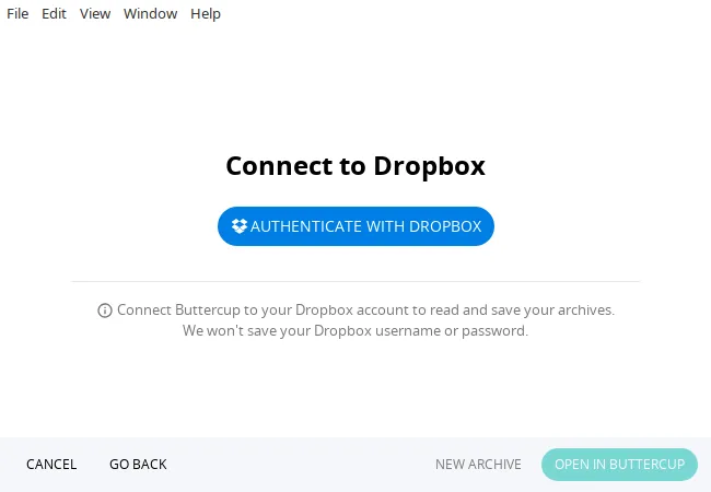 你还可以在添加存档时在 Buttercup 的欢迎界面连接这些服务。