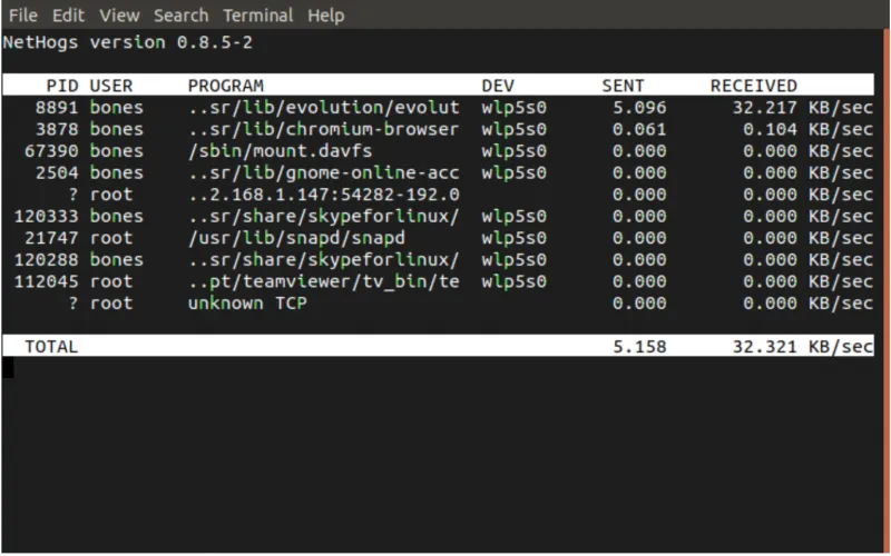 图 3:NetHogs 截图