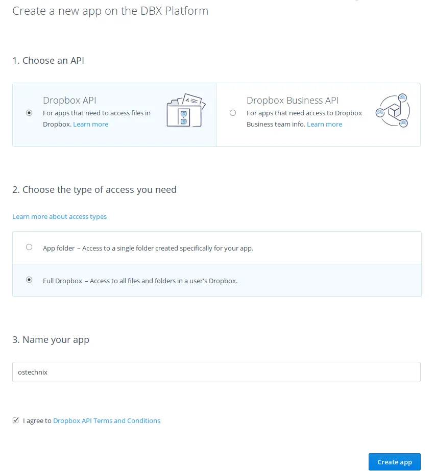 默认情况下,dbxfs 会将 Dropbox 访问令牌存储在系统密钥环或加密文件中。但是,你可能希望将其存储在 gpg 加密文件或其他地方。如果是这样,请在 Dropbox 开发者应用控制台上创建个人应用来获取访问令牌。