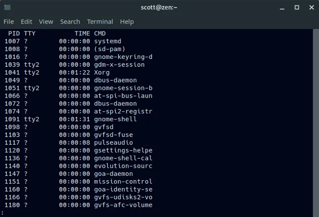 $ ps -u scott | more