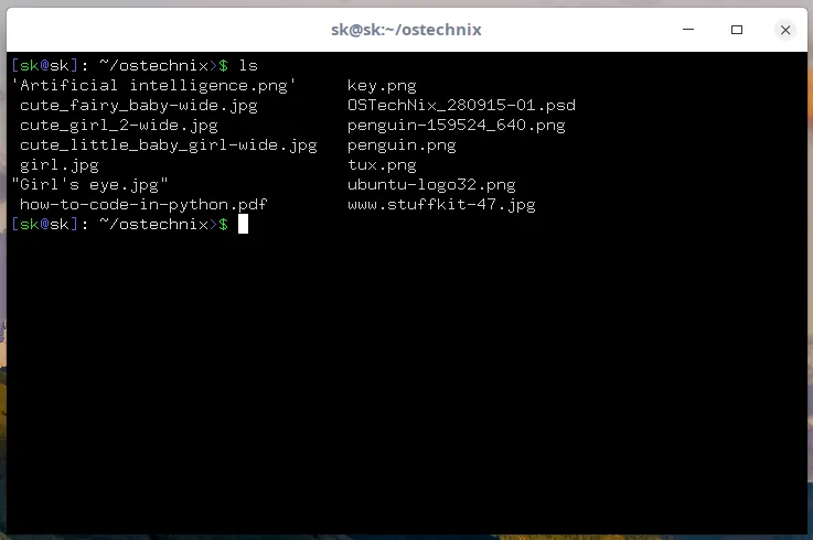 如果在没有路径的情况下运行它,它将显示在当前工作目录中的缩略图图像。我在名为 ostechnix 的目录中有几个文件。