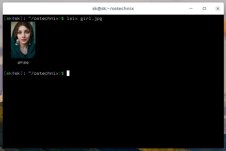 就像我已经说过的那样,lsix 非常简单实用。它没有任何命令行选项或配置文件。你所要做的就是将文件的路径作为参数传递,如下所示。