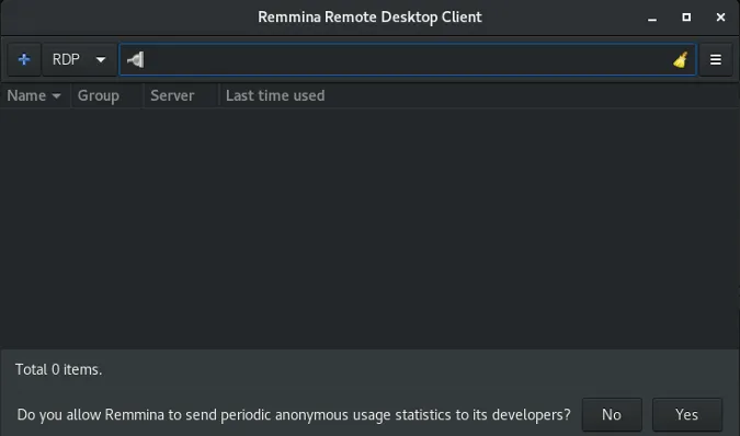 点击图标运行 Remmina,你应该能看到像这样的屏幕: