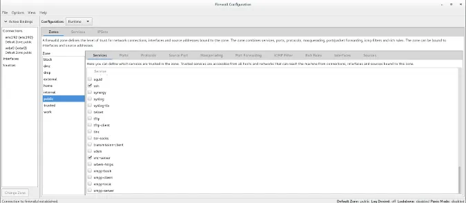 接着,从“应用菜单 → 其它 → 防火墙”打开“防火墙设置”。