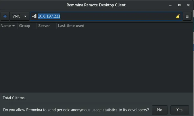 勾选 “vnc-server”旁边的选框(如下图所示)关闭窗口。接着直接到你远程电脑上的 Remmina,输入你想连接到的 Linux 桌面的 IP 地址,选择 VNC 作为协议,点击回车键。