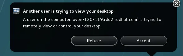 如果你之前选择的验证选项是“新连接必须询问访问许可”,RHEL 系统用户会看到这样的一个弹窗: