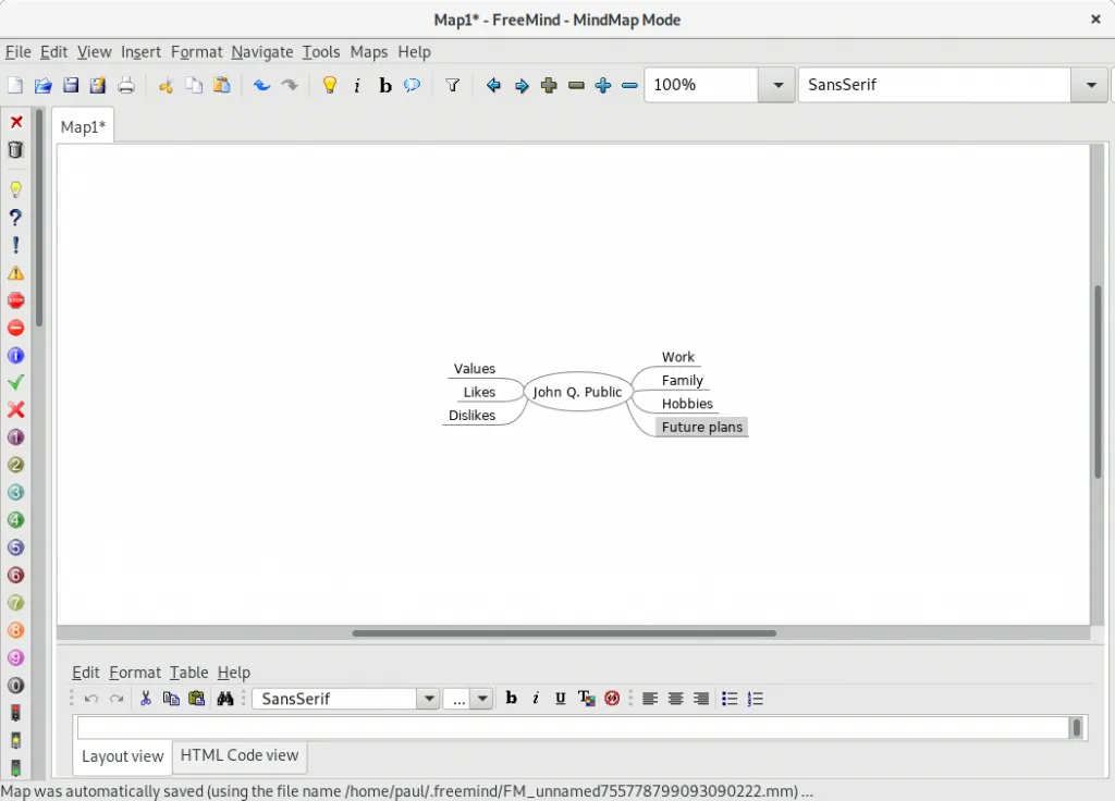 这是让团队或项目成员互相介绍的好方法。你可以将各种格式和颜色应用于导图以赋予其个性。当然,这些在纸上做很有趣。但是在 Fedora 中安装一个就意味着你可以随时修复错误,甚至可以在你改变的时候做出修改。