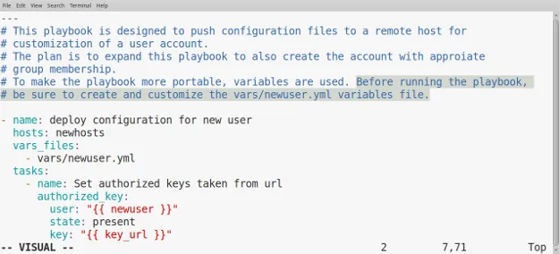 当我使用大多数 Linux 发行版中提供的默认编辑器来教学 Ansible 时,我经常使用 Vim 的可视化模式。它可以让我在屏幕上高亮显示我的操作 —— 我要编辑什么以及我正在做的文本处理任务,以便使我的学生更容易学习。