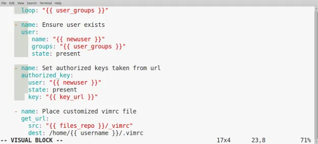 可视化块模式对于操作特定的表格数据文件非常有用,但它作为验证 Ansible 剧本文件缩进的工具也很有帮助。