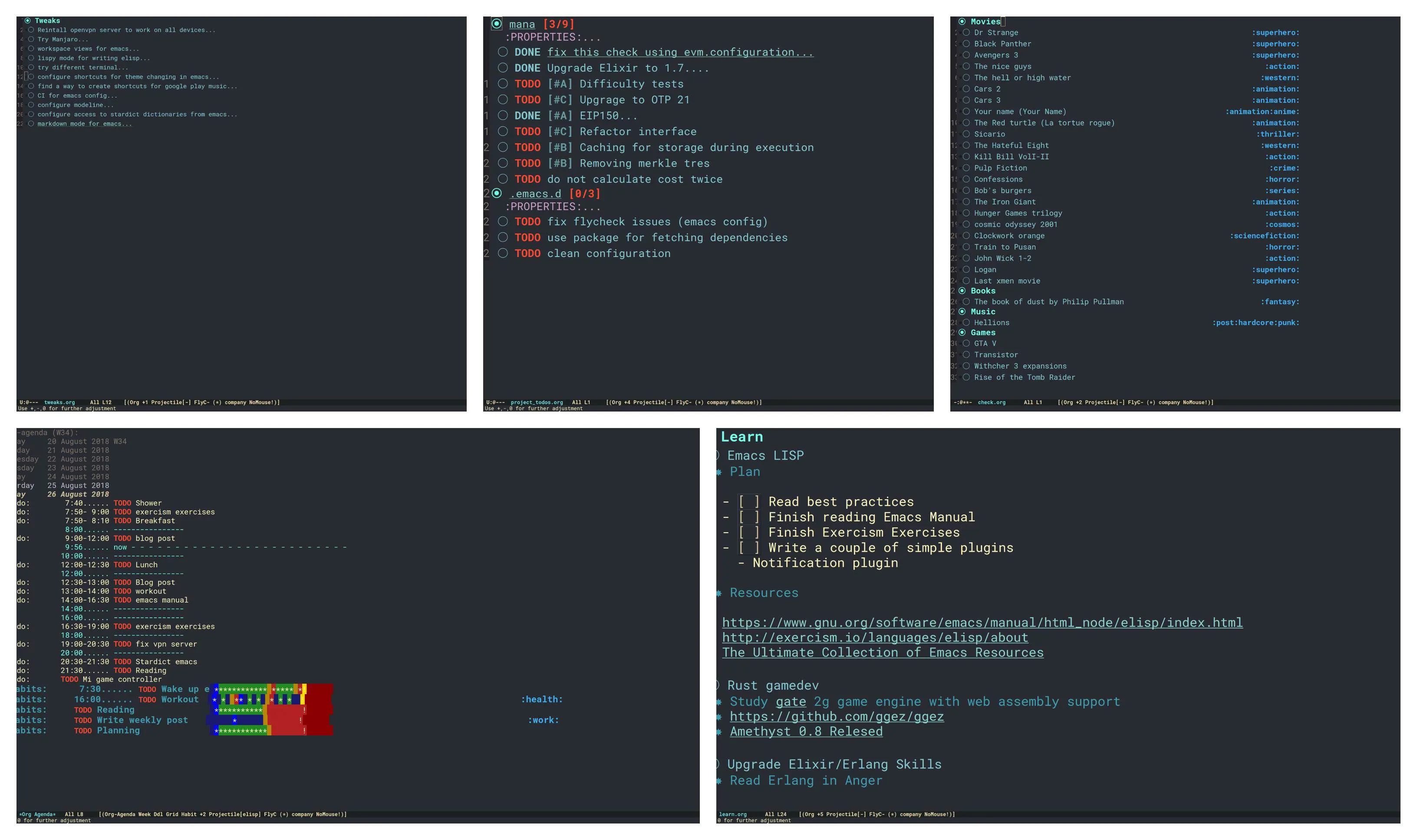 首先而且最重要的是,Org 模式是一个管理笔记和待办列表的工具,Org 模式的所有工具都聚焦于使用纯文本文件记录笔记。我使用 Org 模式管理多种笔记。