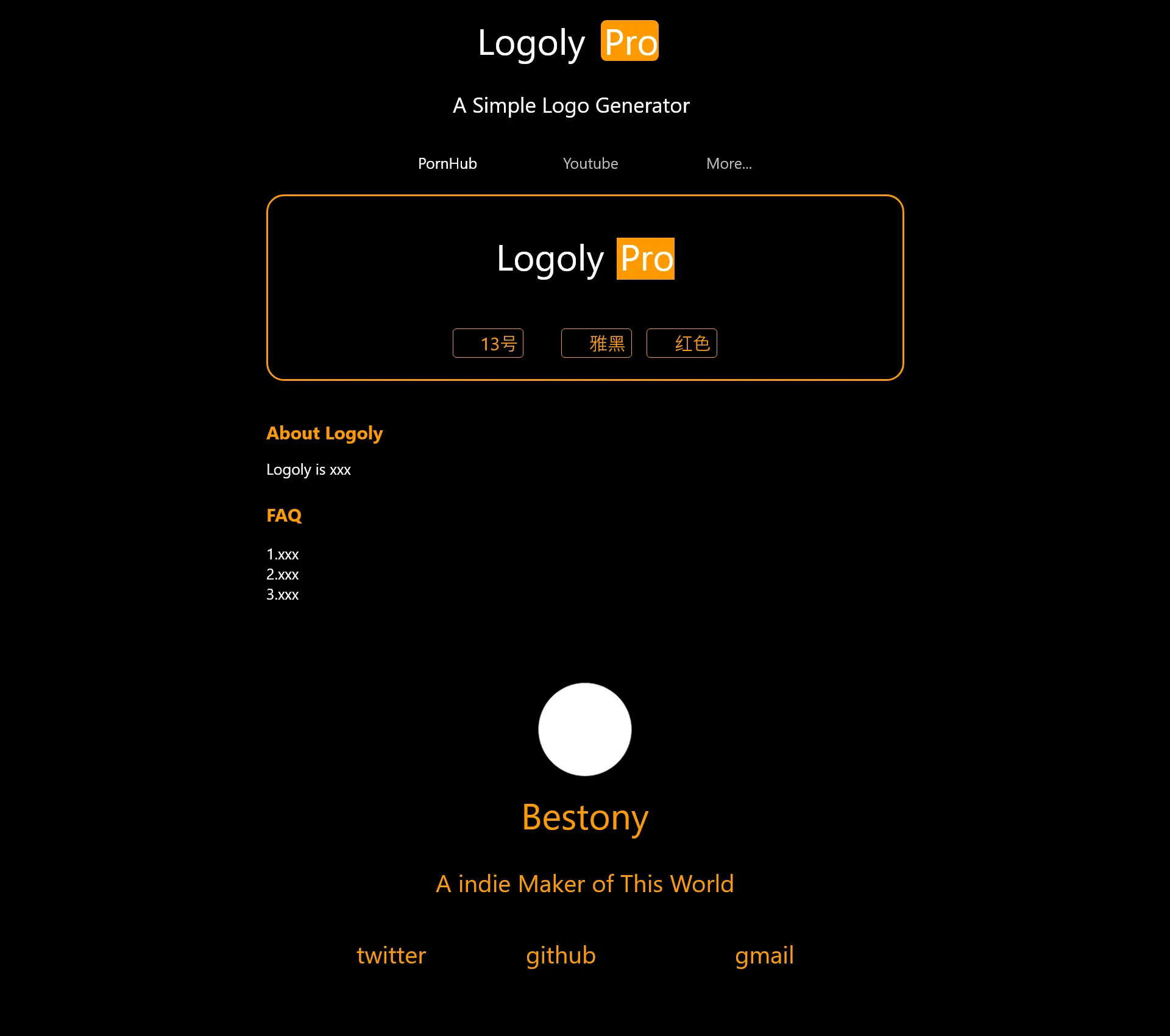 Logoly.Pro 是一个在线的 PornHub 风格 Logo 生成工具,可以帮助你快速生成类似 PornHub 风格的 Logo。