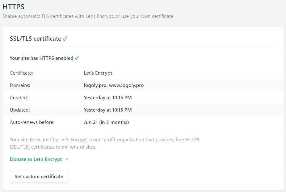 稍等一会,就会自动为你的域名签注 Let’s Encrypt 的证书。