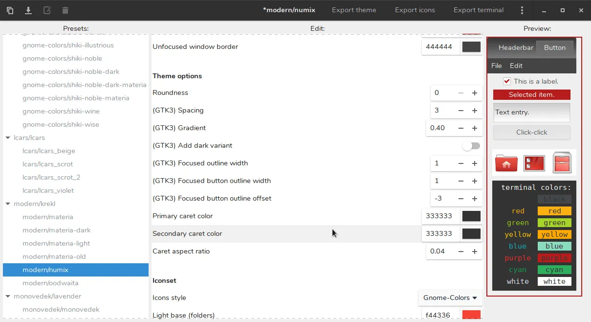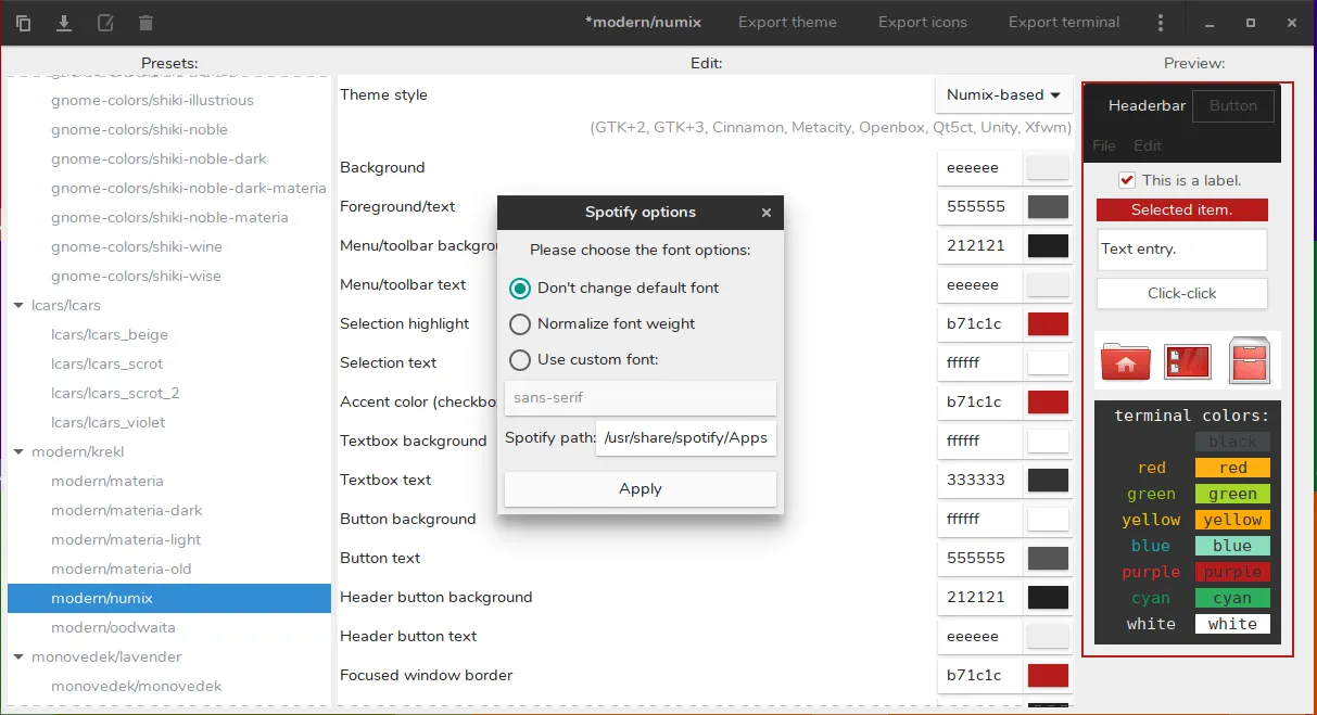 Oomox 是一个图形应用,可以完全使用自己的颜色、图标和终端风格自定义和创建自己的 GTK 主题。它自带几个预设,你可以在 Numix、Arc 或 Materia 主题样式上创建自己的 GTK 主题。
