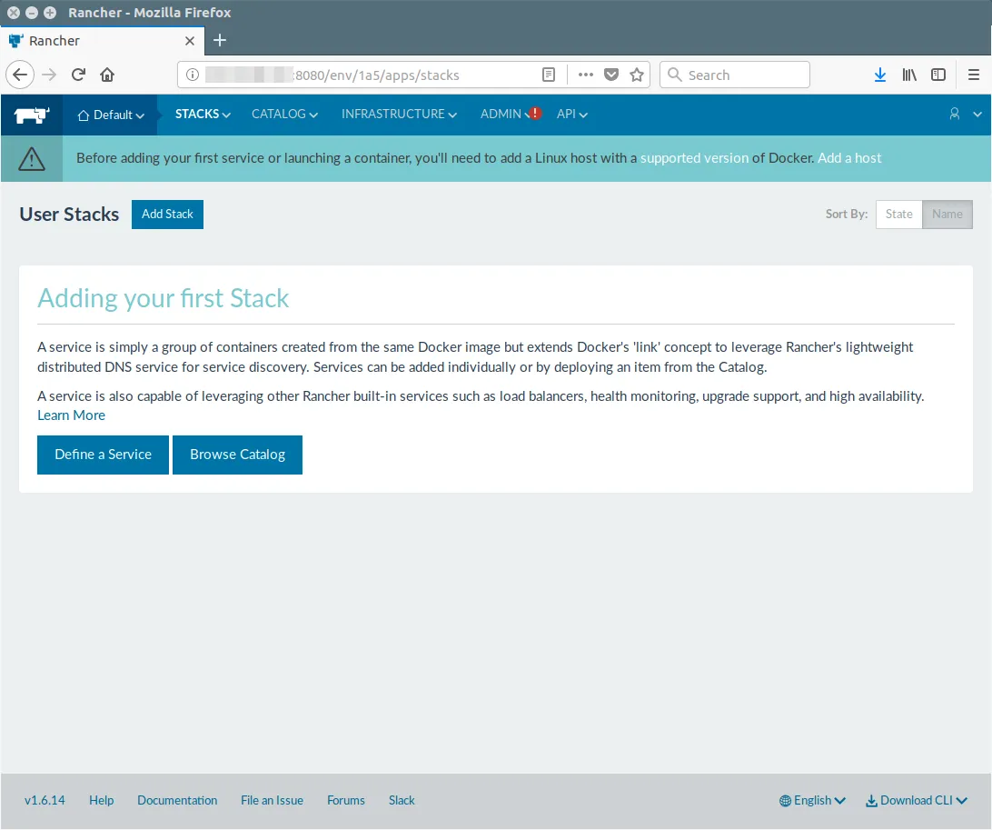 浏览器输入 http://hostname:8080 或 http://server_ip:8080 去访问 rancher GUI.