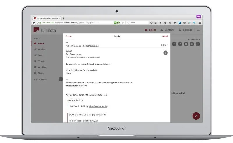 Tutanota 有许多引人注目的功能,例如: