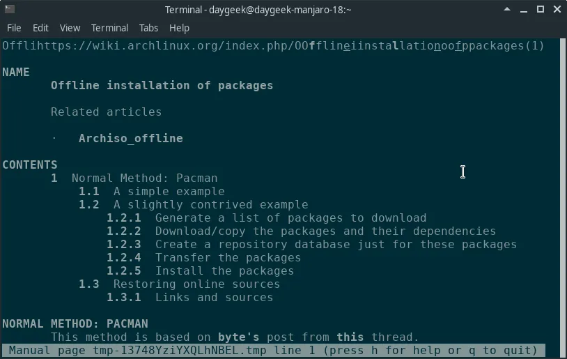 而且,你无需切换到 GUI。更新将每两天自动推送一次,因此,你的 Arch Wiki 本地副本页面将是最新的。这个工具的名字是 awman, awman 是 “Arch Wiki Man” 的缩写。