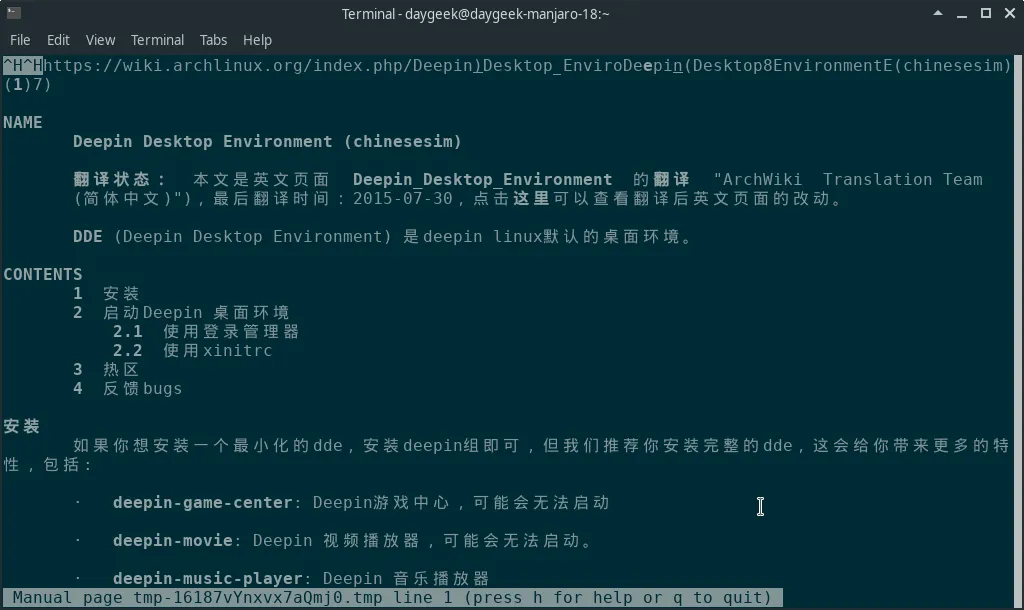一个名为 arch-wiki-man 的工具提供了一个在命令行中更快地执行这个操作的方案。如果你是一个 Arch Linux 爱好者,我建议你阅读 Arch Linux 安装后指南,它可以帮助你调整你的系统以供日常使用。