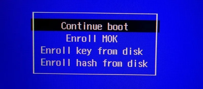 如果你之前被要求设置安全启动密码,此刻你会看到一个蓝色界面,上面写着 “MOK management”。这是个复杂的概念,我试着长话短说。