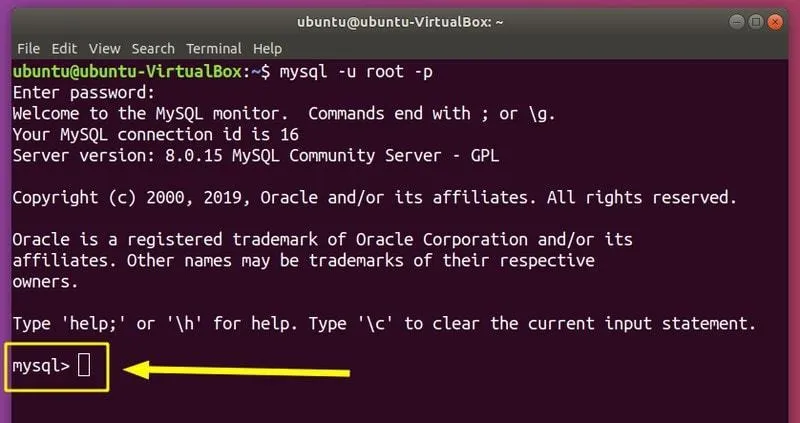 如果你成功输入了必要的参数,你将会收到由 MySQL shell 提示符提供的欢迎(mysql >):