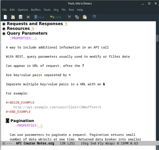 如果本文没有包含 Org 模式 的话,那么我可能会被人所诟病。为什么?它可以说是 Emacs 中最灵活、使用最广泛的记录笔记的方式了。以正确的方式使用它,Org 模式可以极大地增强记笔记的能力。