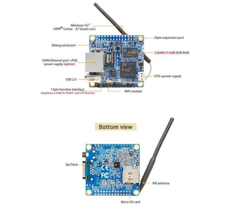 - Allwinner R16-J Quad-core Cortex-A7 CPU @1.2GHz