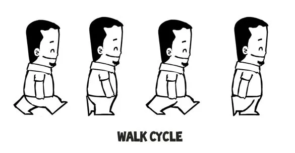 为了使你的游戏真正的刺激,你应该为你的英雄使用一张动态的妖精图片。这意味着你需要绘制更多的素材,并且它们要大不相同。最常见的动画就是走路循环,通过一系列的图像让你的妖精看起来像是在走路。走路循环最快捷粗糙的版本需要四张图像。